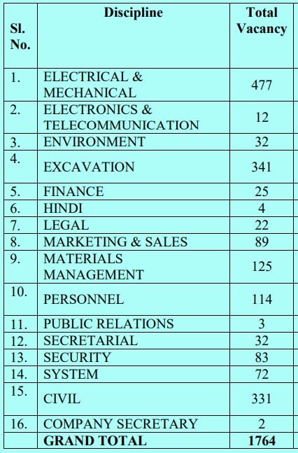 Coal India Executive Cadre Recruitment 2023 Short Overview :